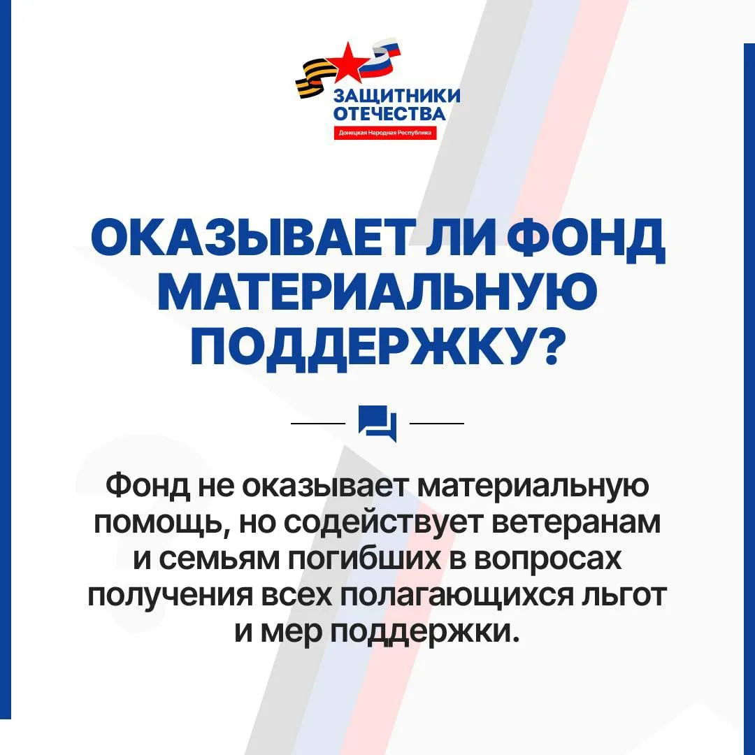 Филиал фонда «Защитники Отечества» в Донецкой Народной Республике напоминает: