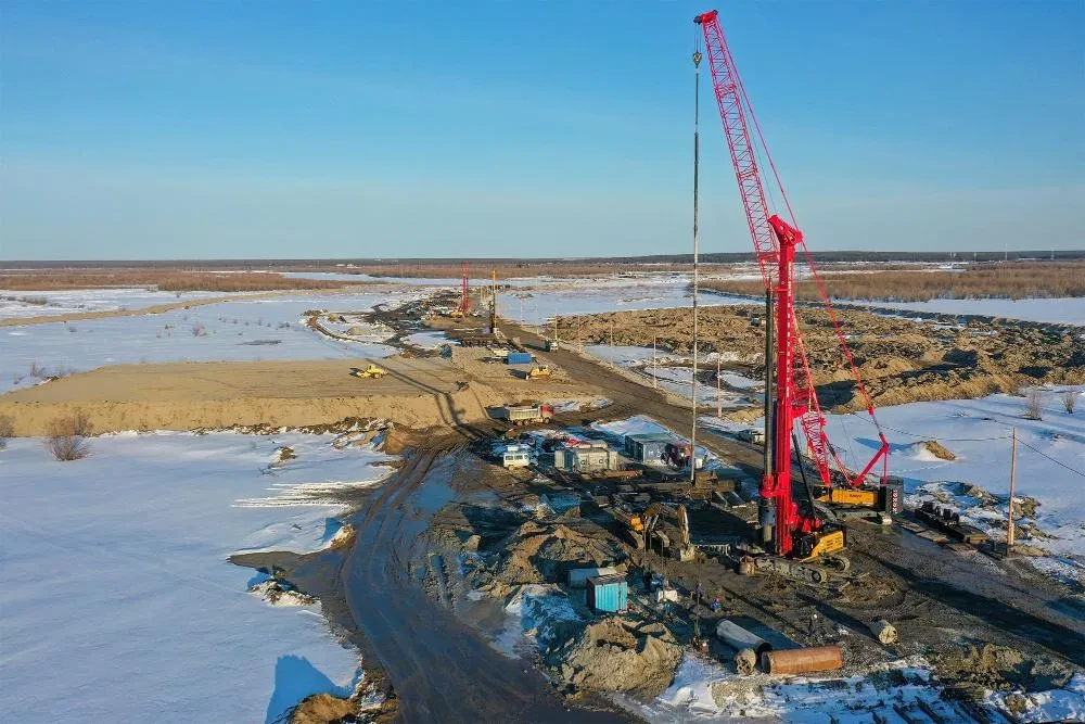 На площадке строительства Ленского моста работы продолжаются на обоих берегах