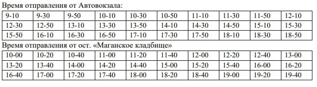 График движения автобусного маршрута № 119 «Автовокзал – Маганское кладбище» (см. фото).