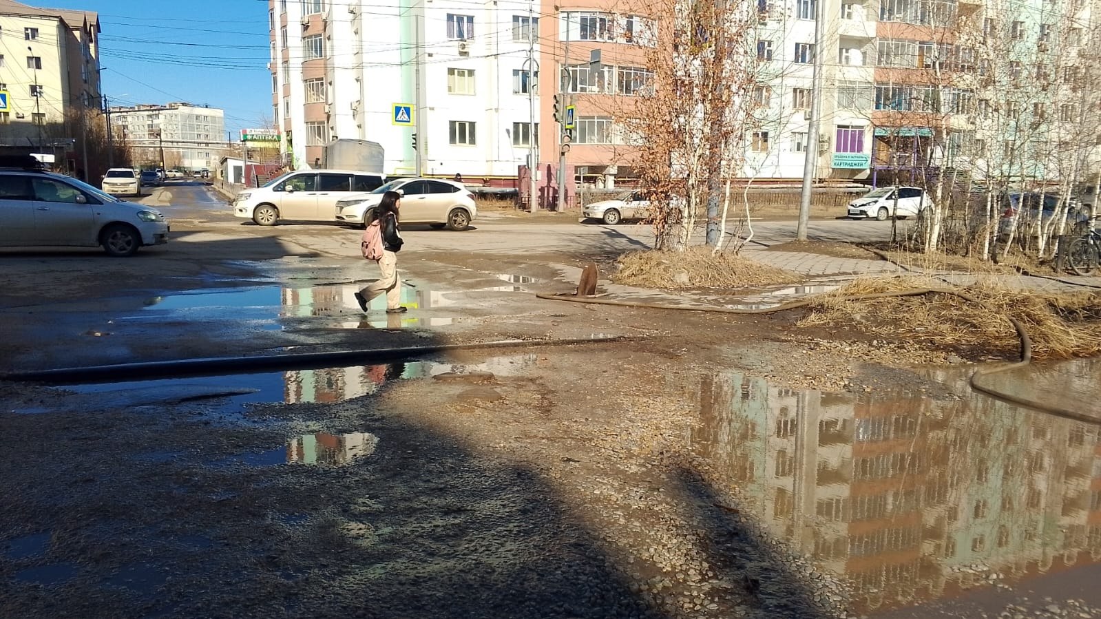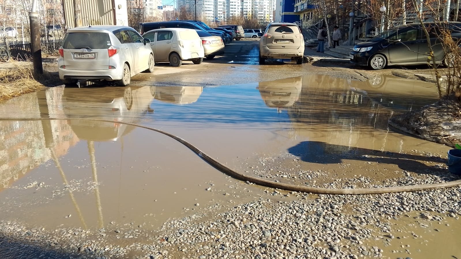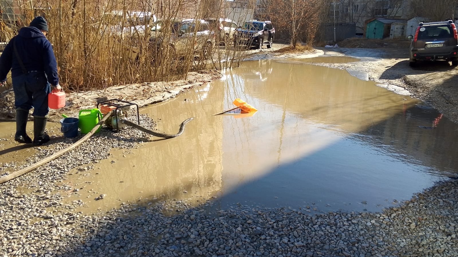 Силами муниципальных дворников проводится откачка талых вод с заниженных мест на территории округа