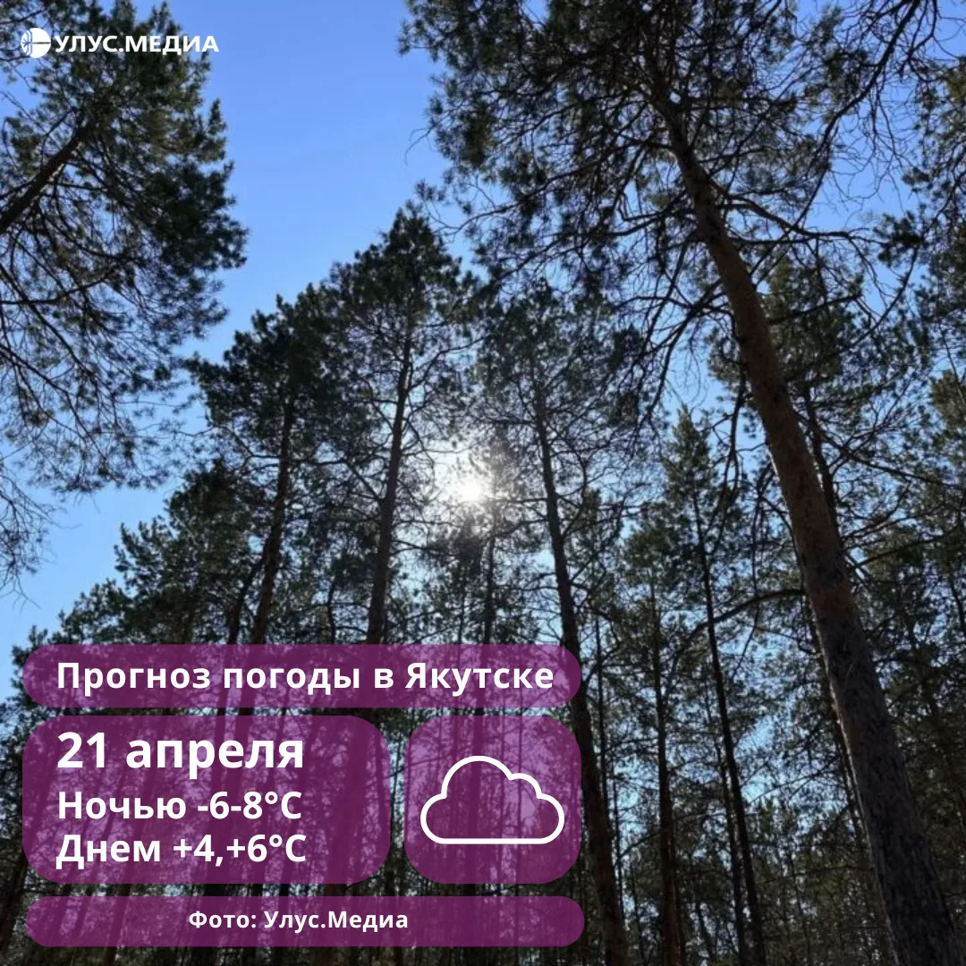 В Якутске 21 апреля существенных осадков не ожидается. Ветер будет дуть с востока со скоростью 4–9 м/с.
