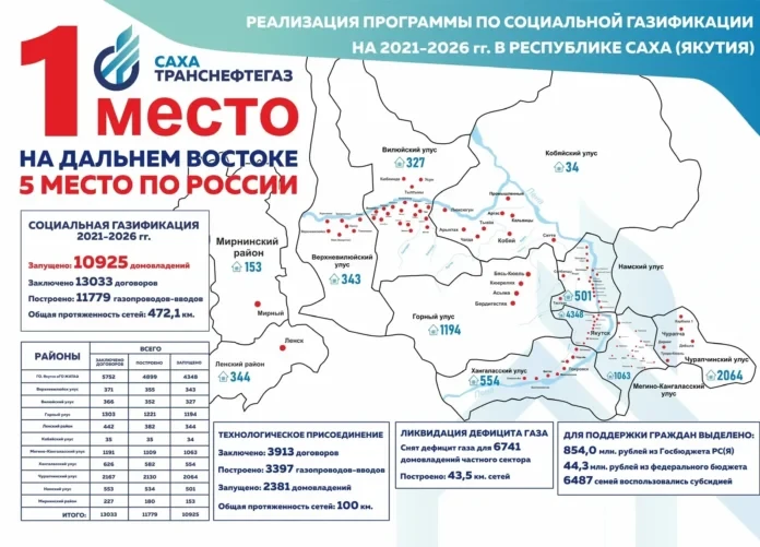Якутия на протяжении нескольких лет удерживает лидерство на Дальнем Востоке по темпам газификации, а по итогам 2025 года вошла в число пяти лучших регионов страны по этому показателю. С 2021 года к сетевому газу подключены 10 925 домов жителей республики.