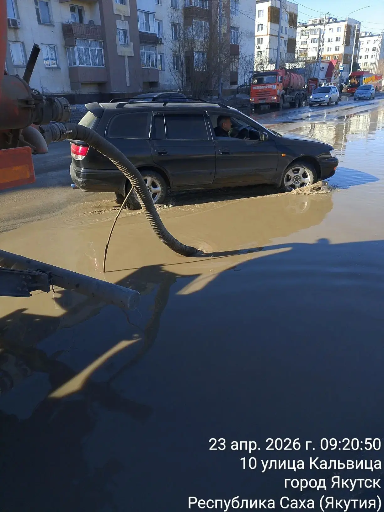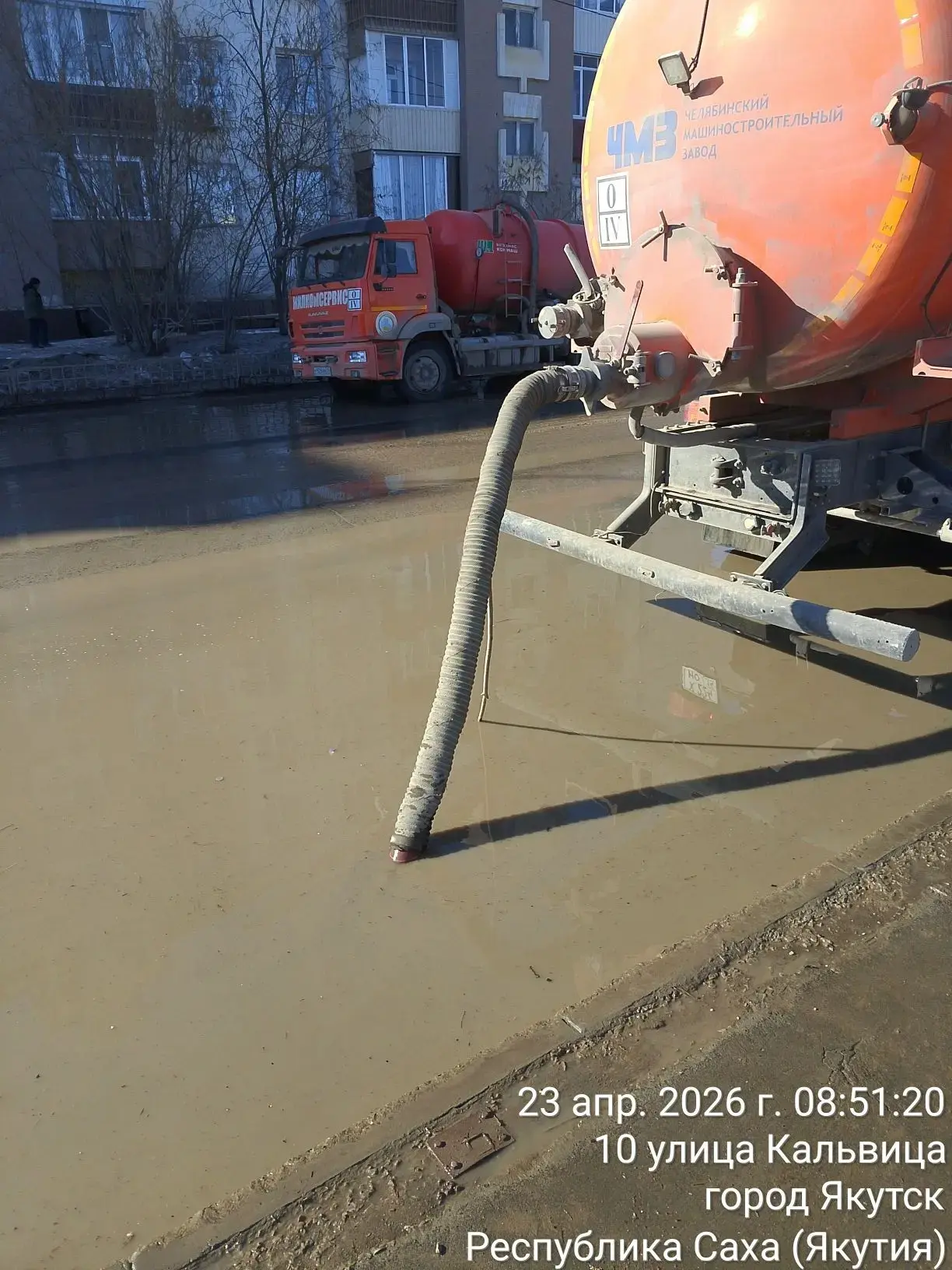 Продолжаются работы по откачке разлива на дороге по ул. Кальвица после аварии на трубопроводе АО «Водоканал». В работе задействованы АСМ МУП «Жилкомсервис».