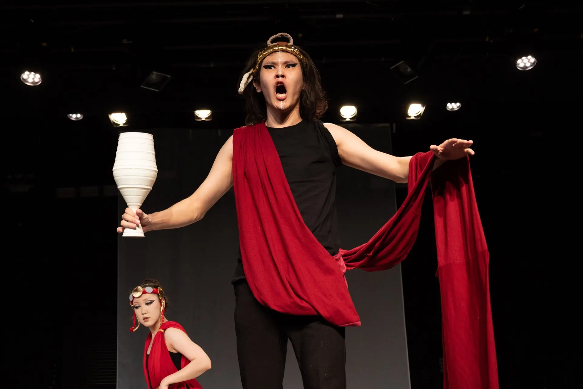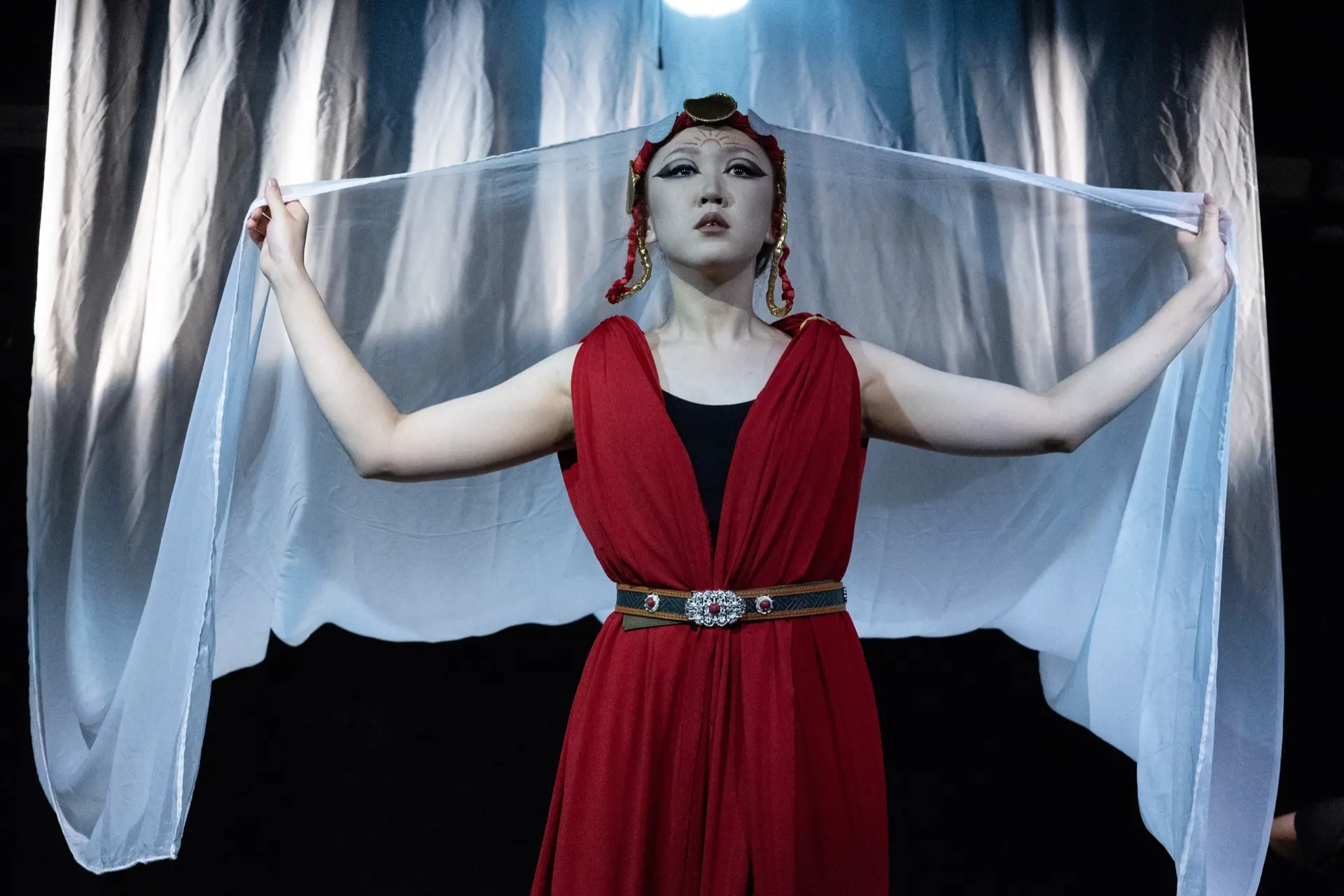 Монологи Медеи звучат через тойук — эпическое песнопение, которое переносит зрителя в иное пространство, где каждое слово и движение обретают сакральный смысл. В финале, вместо привычной трагичной развязки, где Медея мстит, она проходит ритуал перехода, вознося своих детей в мир вечного света. Это не просто история мести, а глубокая рефлексия о столкновении миров, о том, что смерть — это не конец, а возвращение к свету.