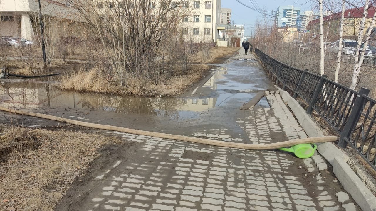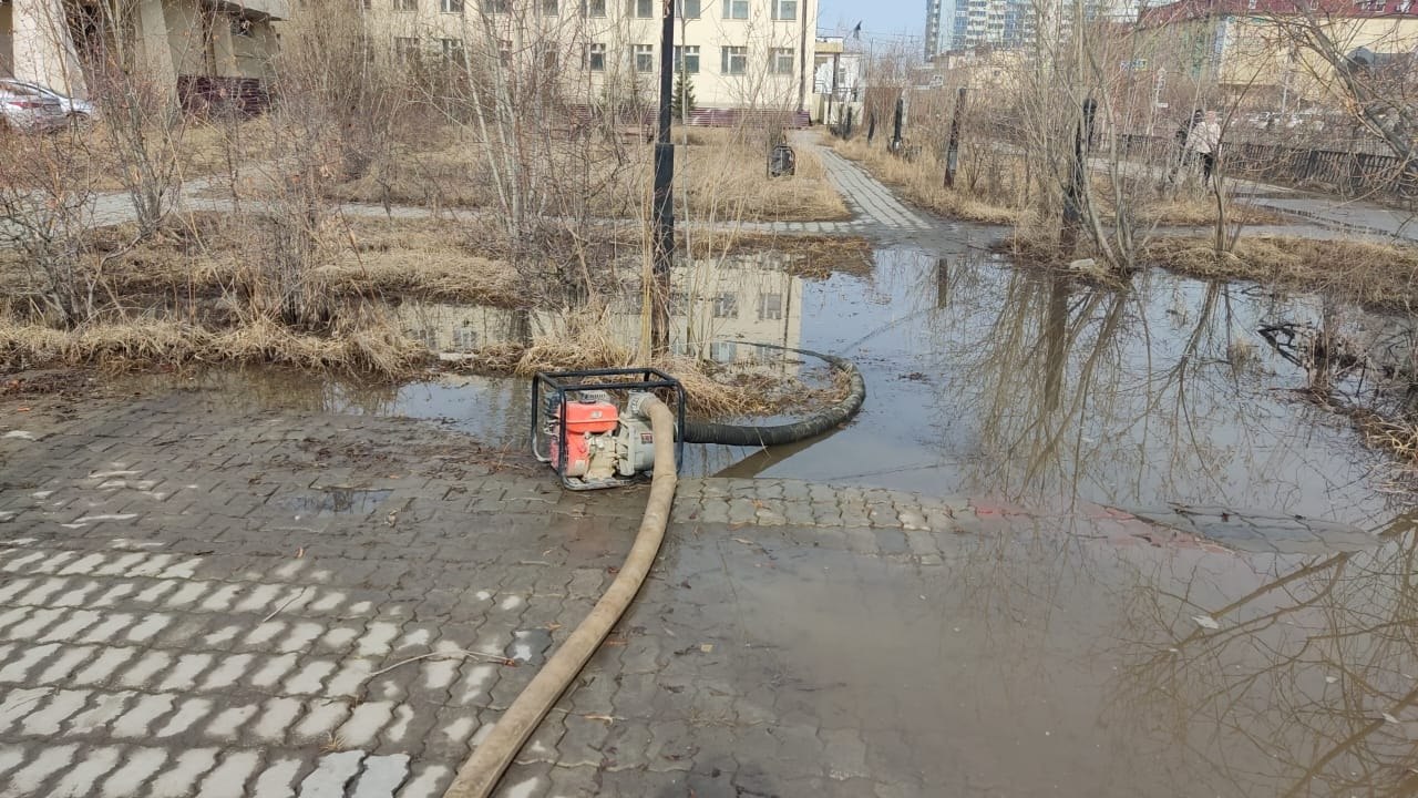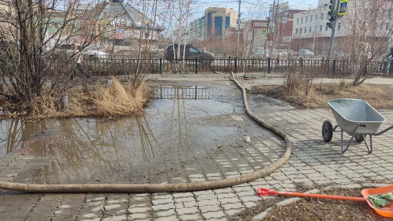 Силами муниципальных дворников проводится откачка талых вод с заниженных мест на территории округа